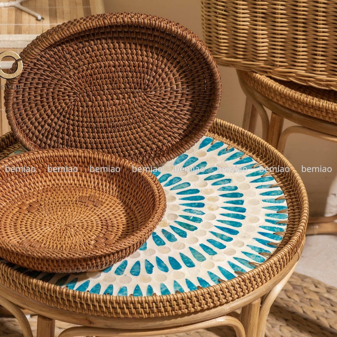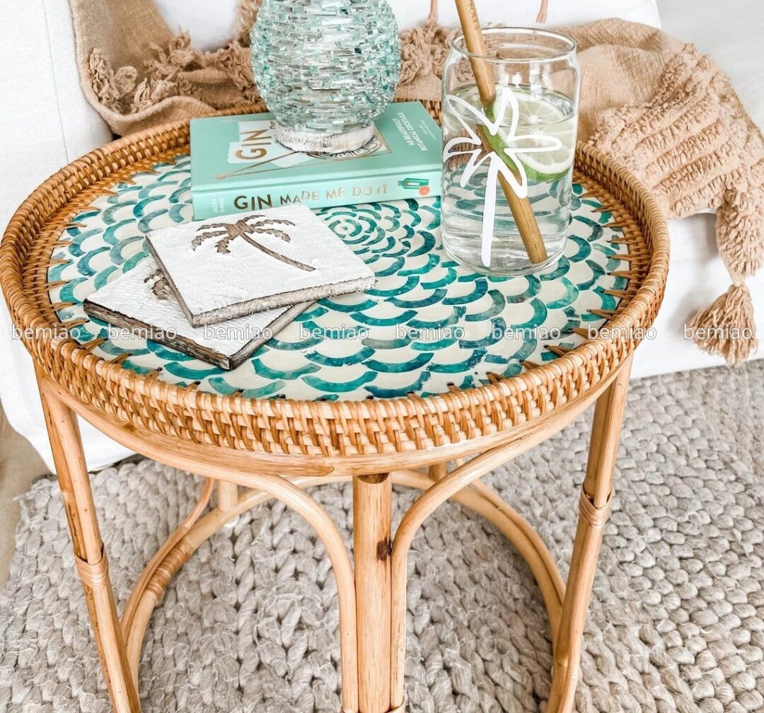 Blending traditional artistry with modern aesthetics, the Mother of Pearl Inlay Rattan Table is a stunning statement piece for any stylish interior.