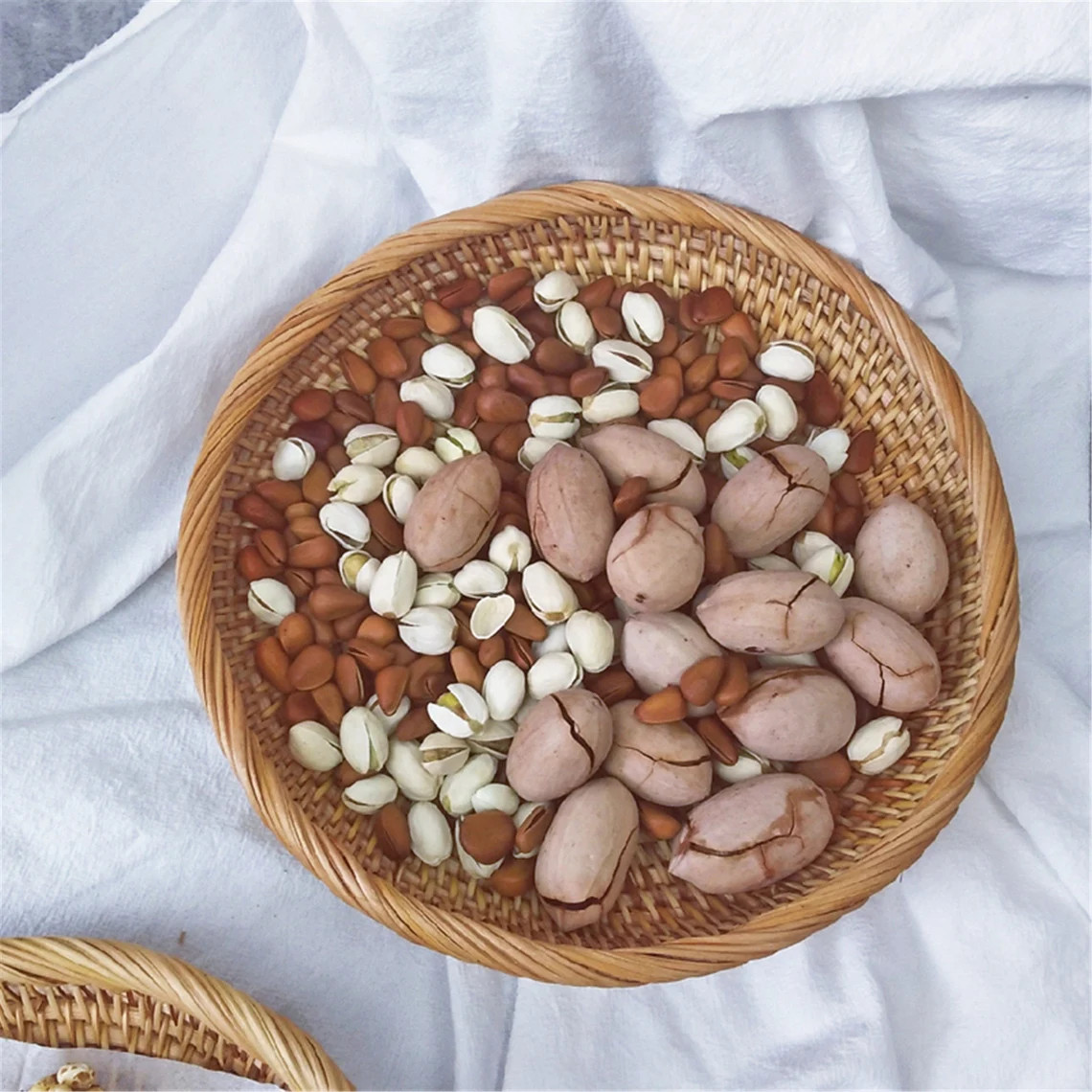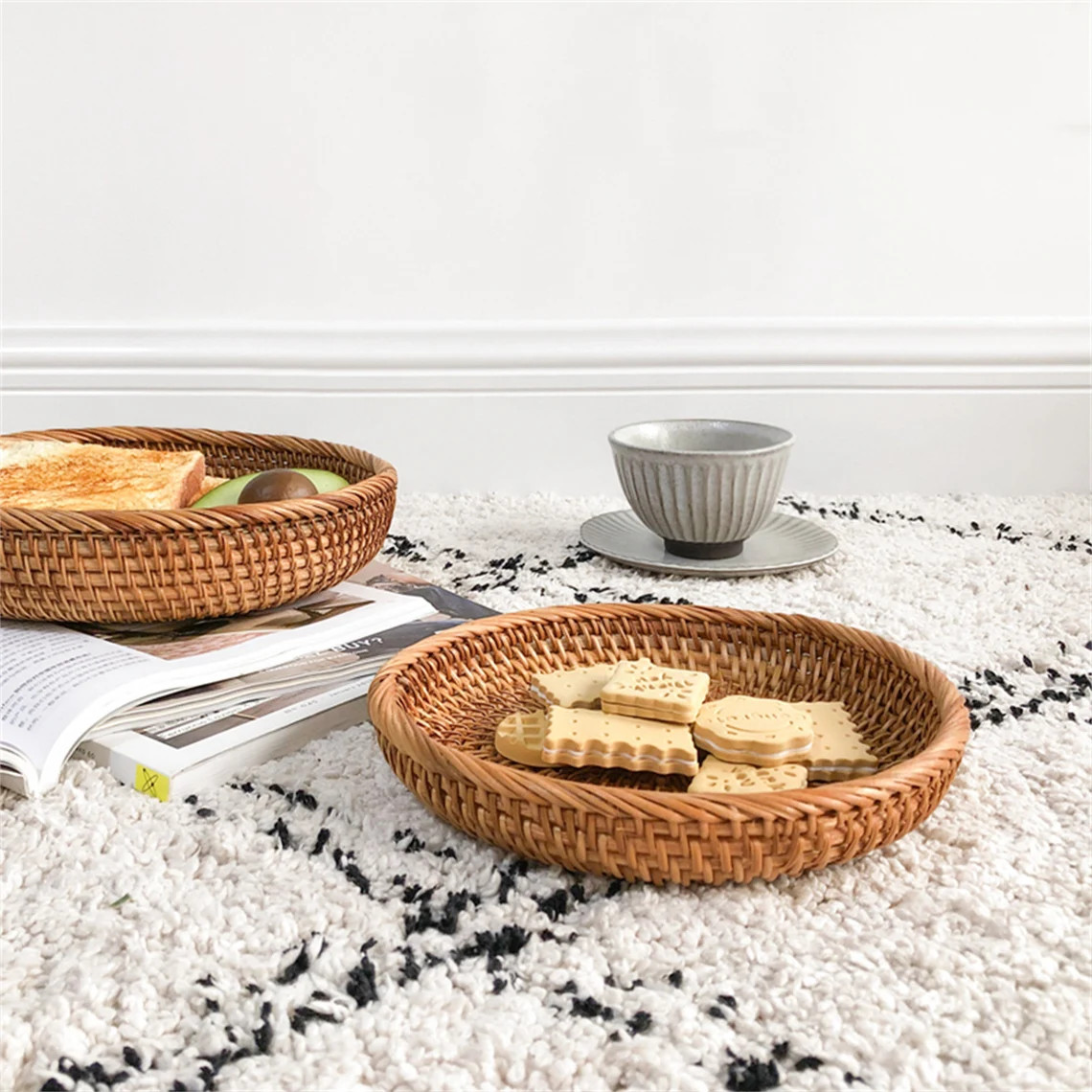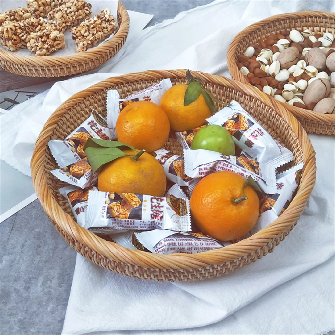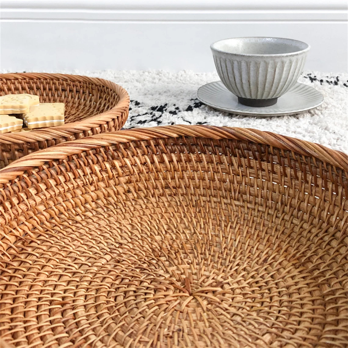 Handwoven Rattan Tray – Round Natural Basket for Fruit, Snacks & Table Decor