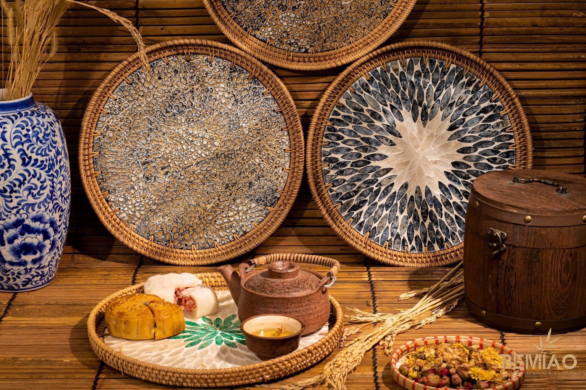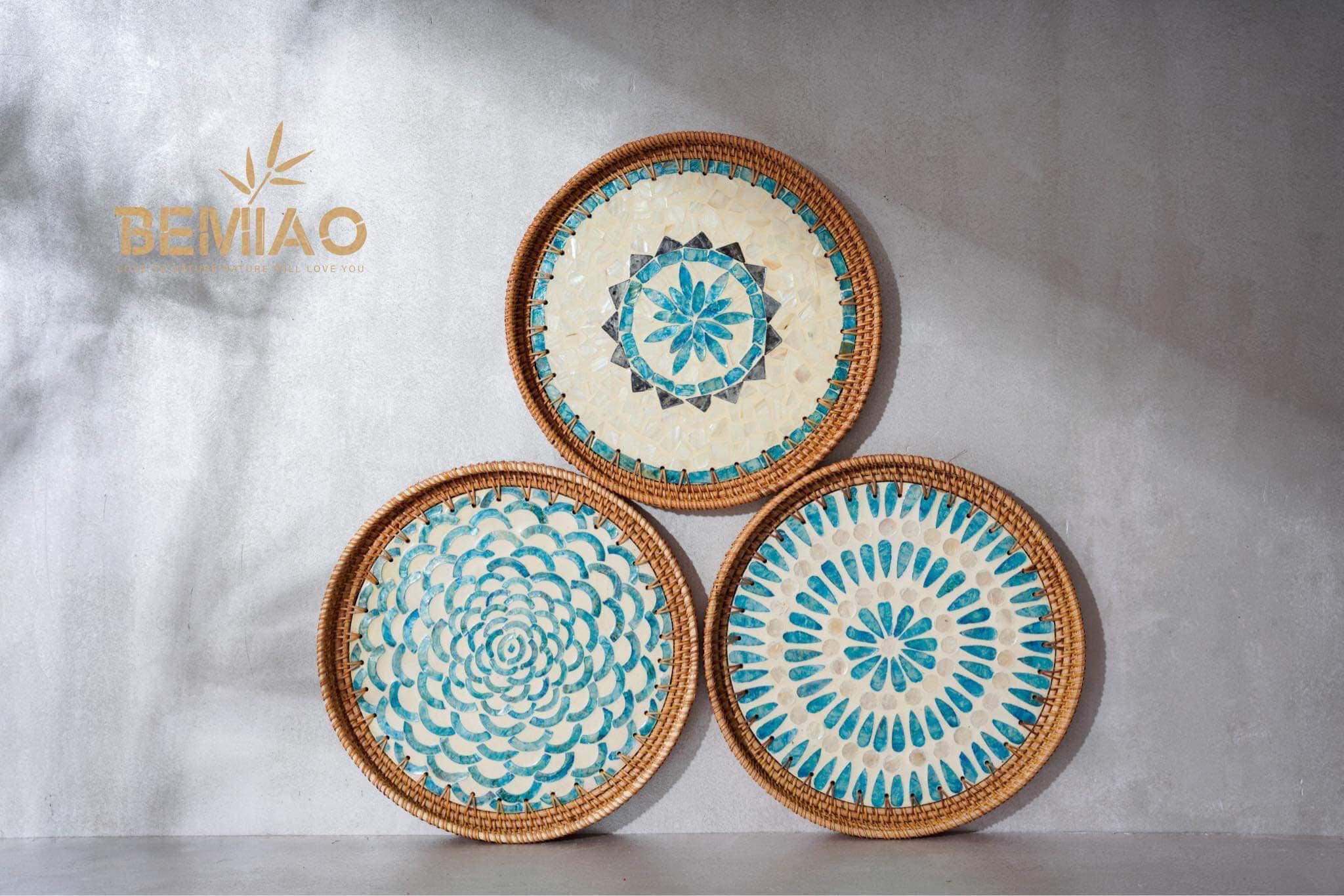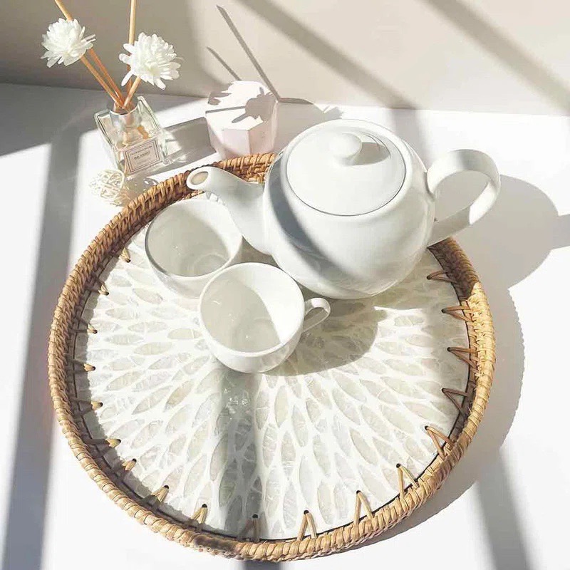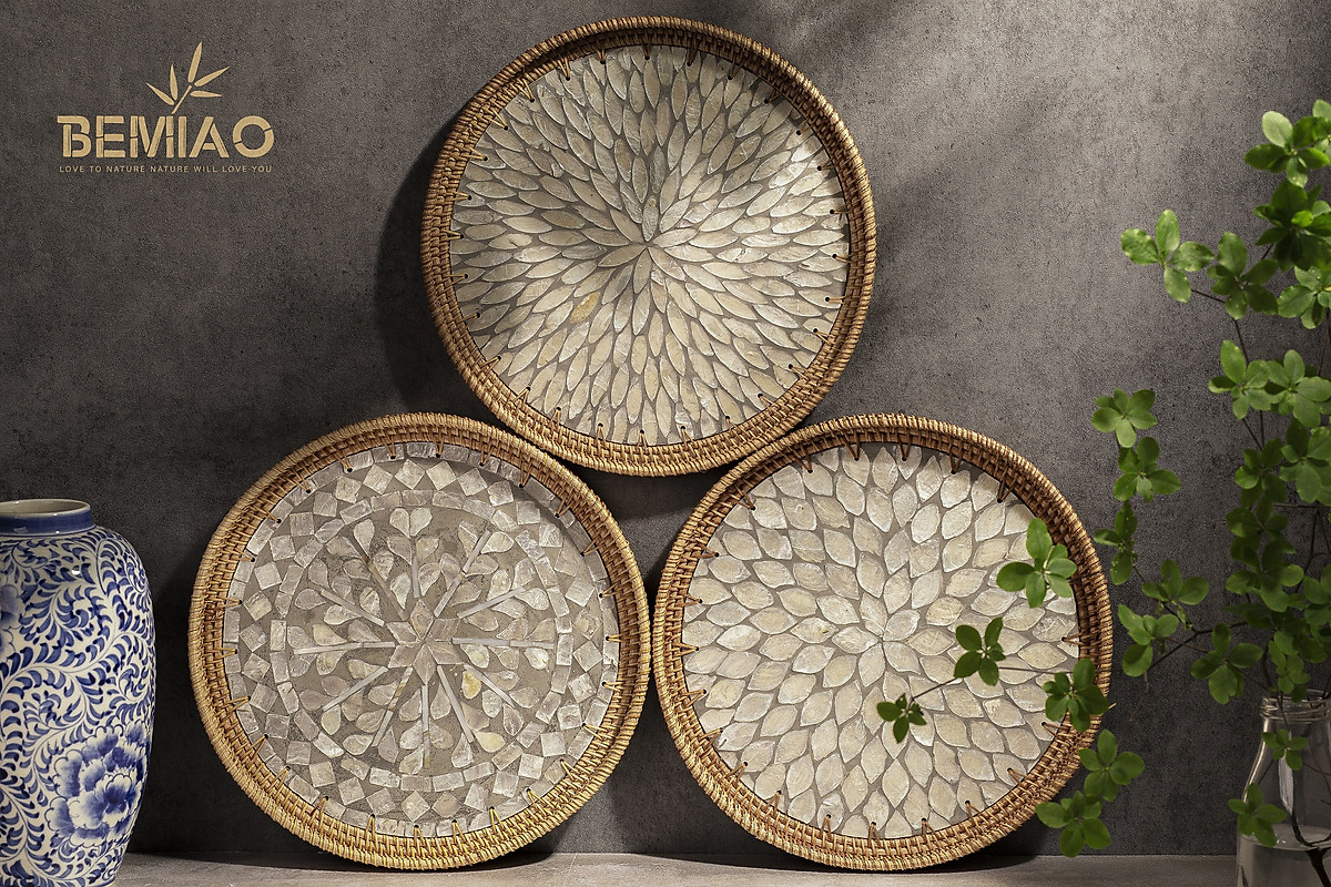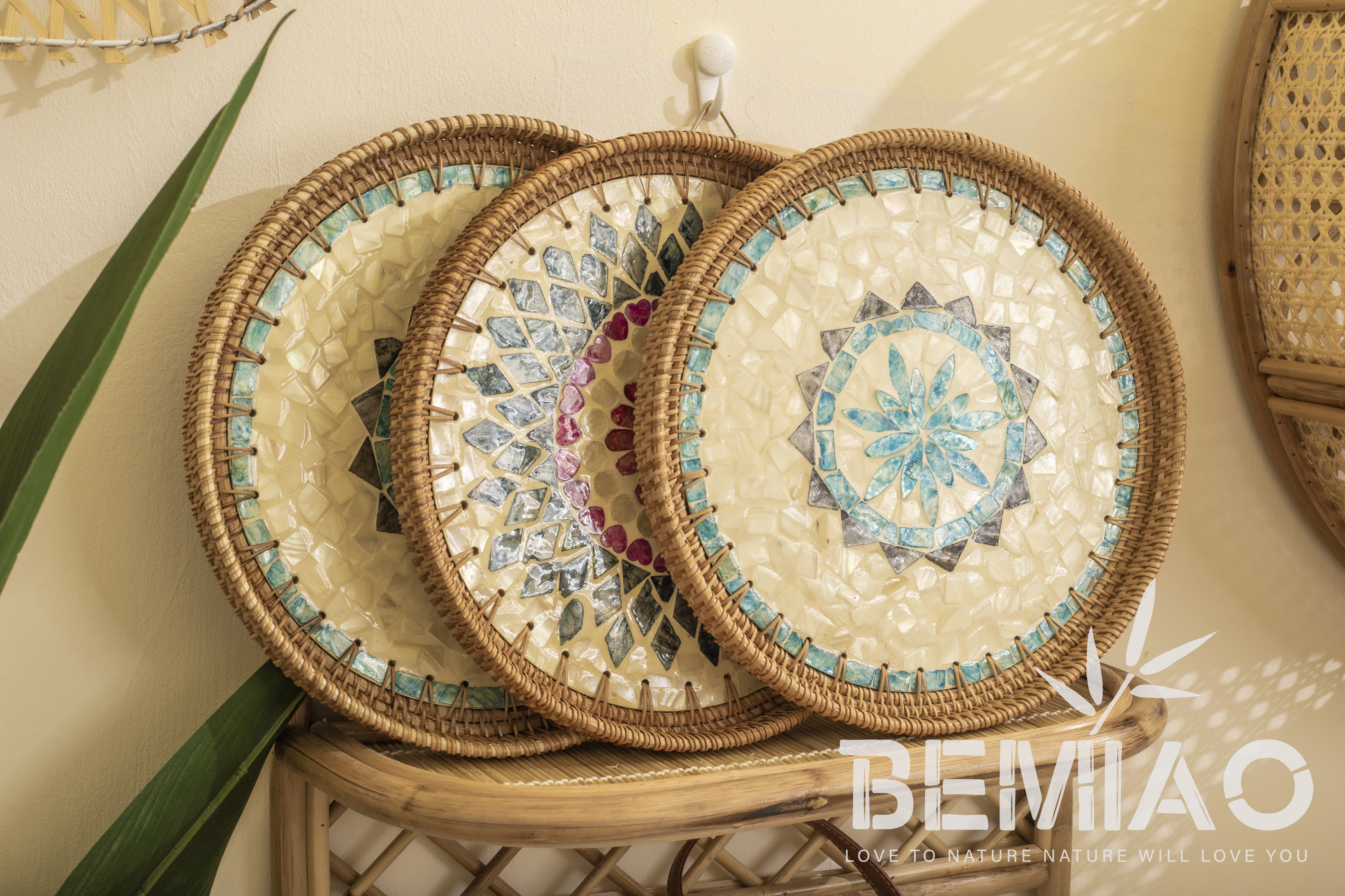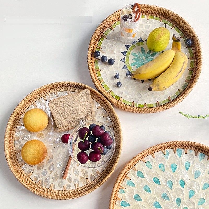 Round Rattan Tray with Mother-of-Pearl Inlay – Unique, Elegant, and Refined