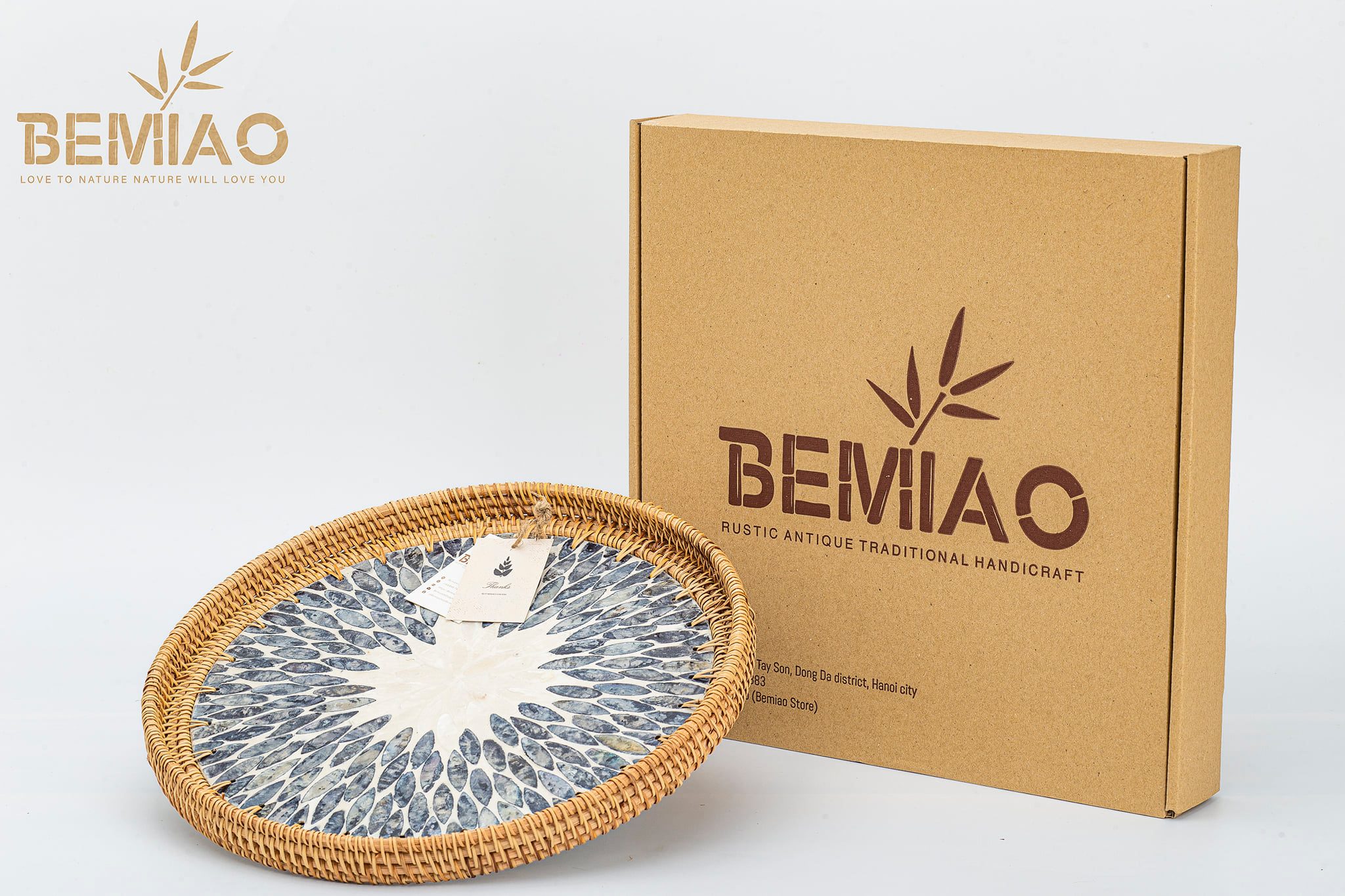 Intricate Mother-of-Pearl Inlay: The tray features beautifully crafted mother-of-pearl inlays, adding elegance and uniqueness to the tray, setting it apart from regular rattan trays.