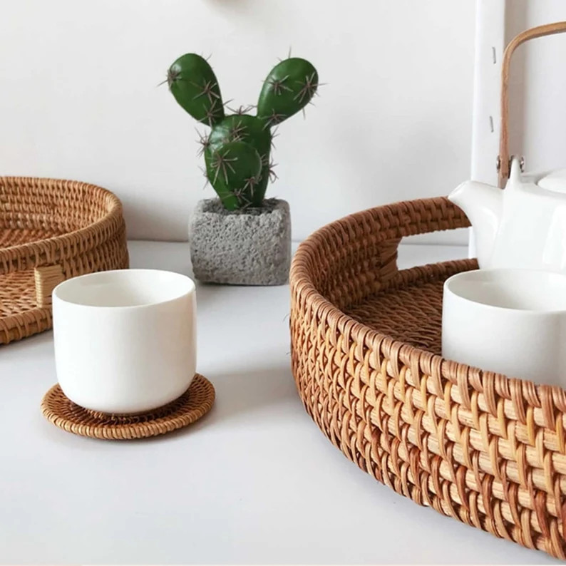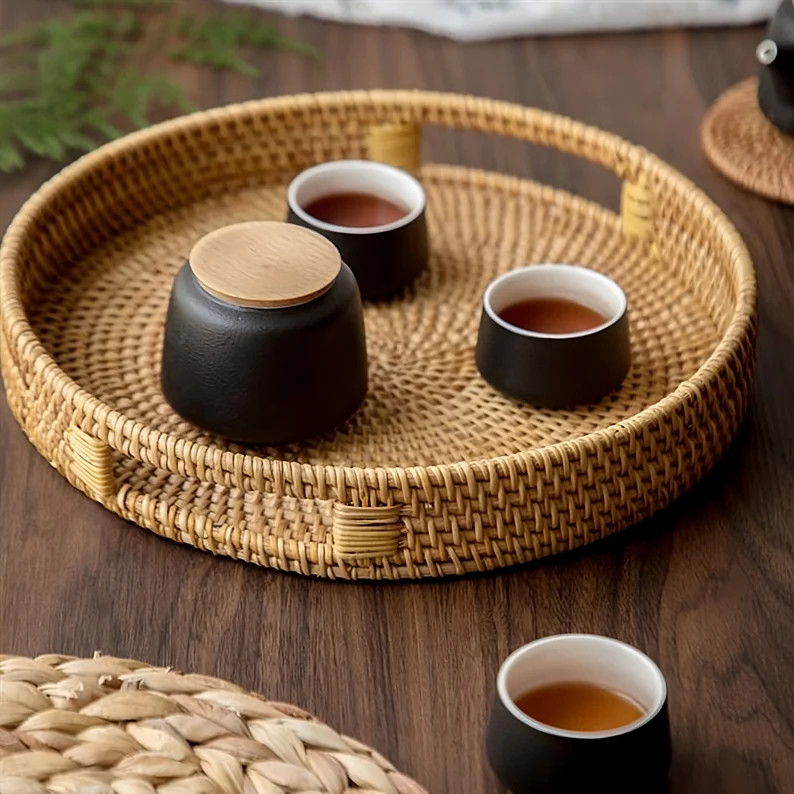 The Round Rattan Tray with Handles is the ideal choice to add a touch of elegance and practicality to your space, especially for festive occasions, birthdays, or as a premium gift.